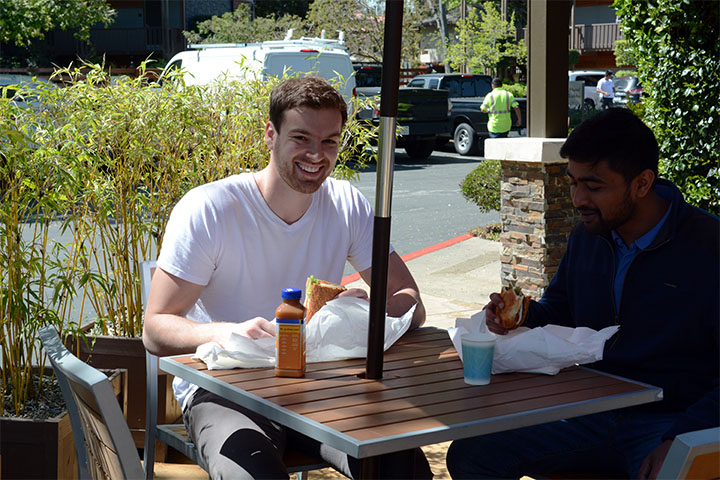 This is very practical for families with kids as well as medium size groups looking for a break to enjoy their sandwiches and meal while having a conversation in our cozy place.