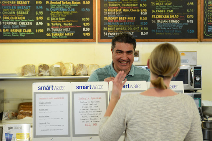 Our espresso bar has a high-end Italian espresso machine and our beans come from San Francisco coffee specialists.